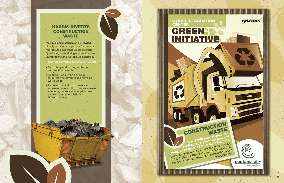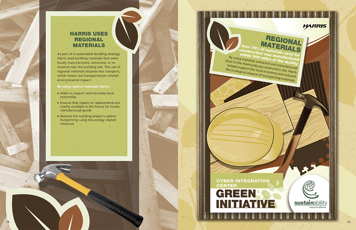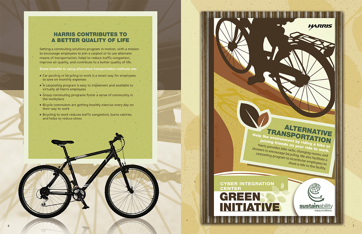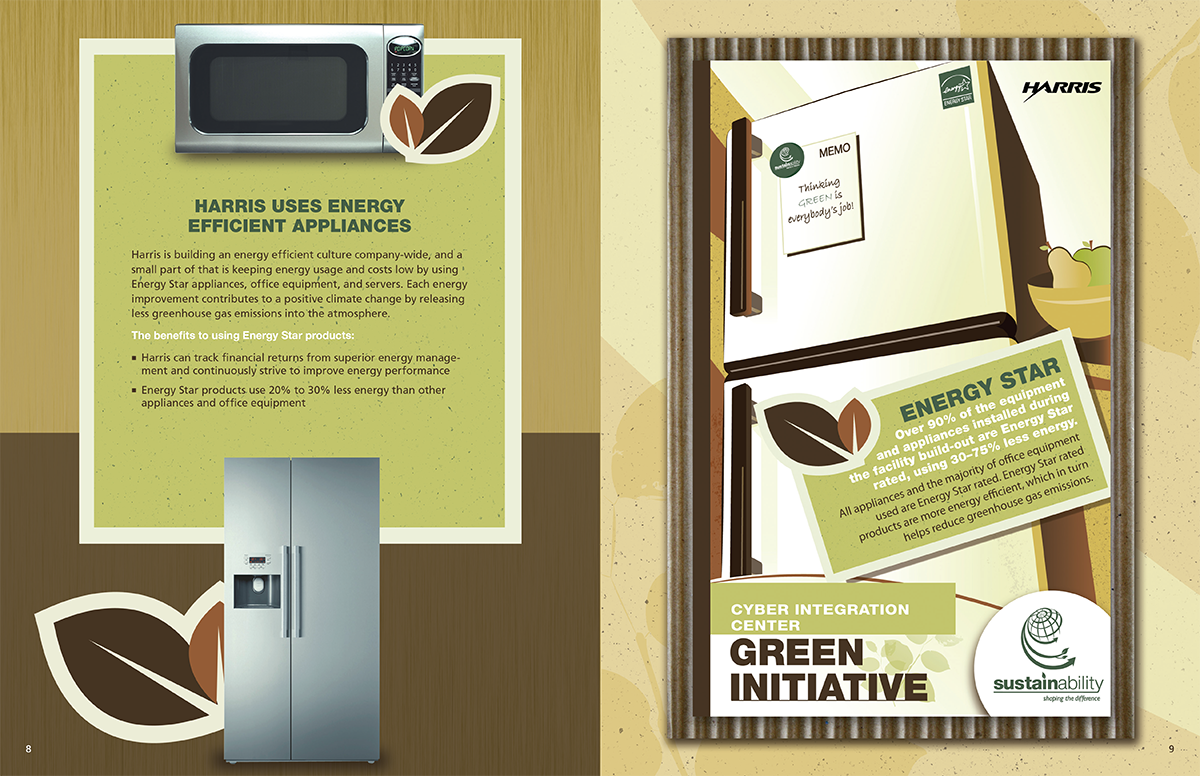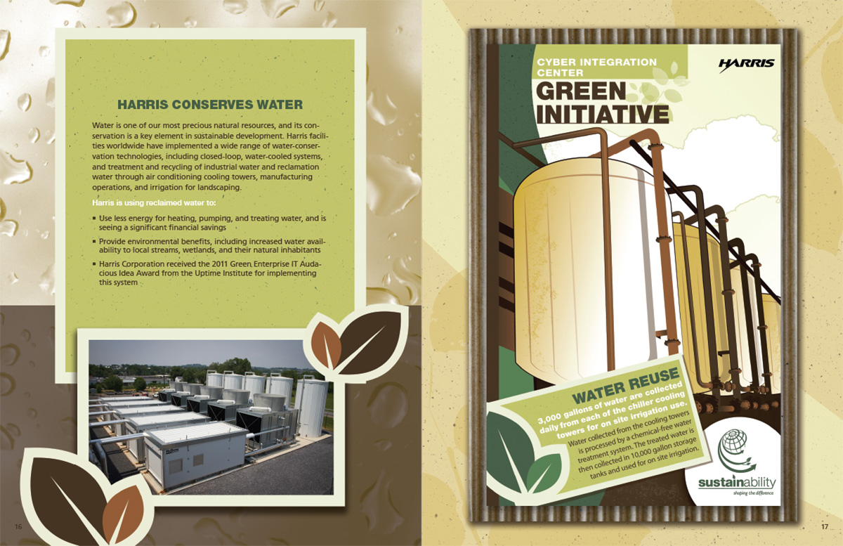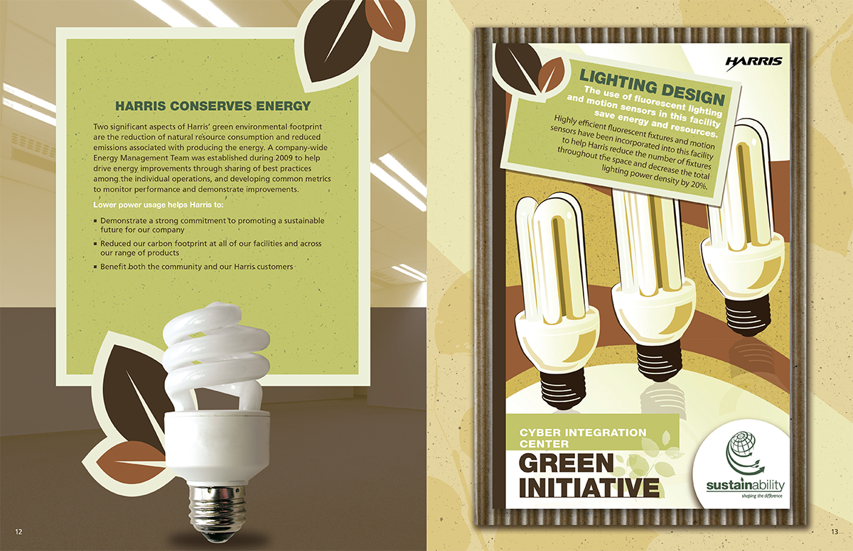 Because there is no planet B. I was asked to create a poster campaign to educate employees and perspective customers about the extensive green initiative that Harris Corporation did for its Chantilly Virginia location. I decided to take an illustrative approach to this challenge and created simplistic drawings using natural textures, colors, and shapes. The posters were then used for coffee table books that are in the main lobby of the building for customers to read while waiting for meetings or before touring the facility.