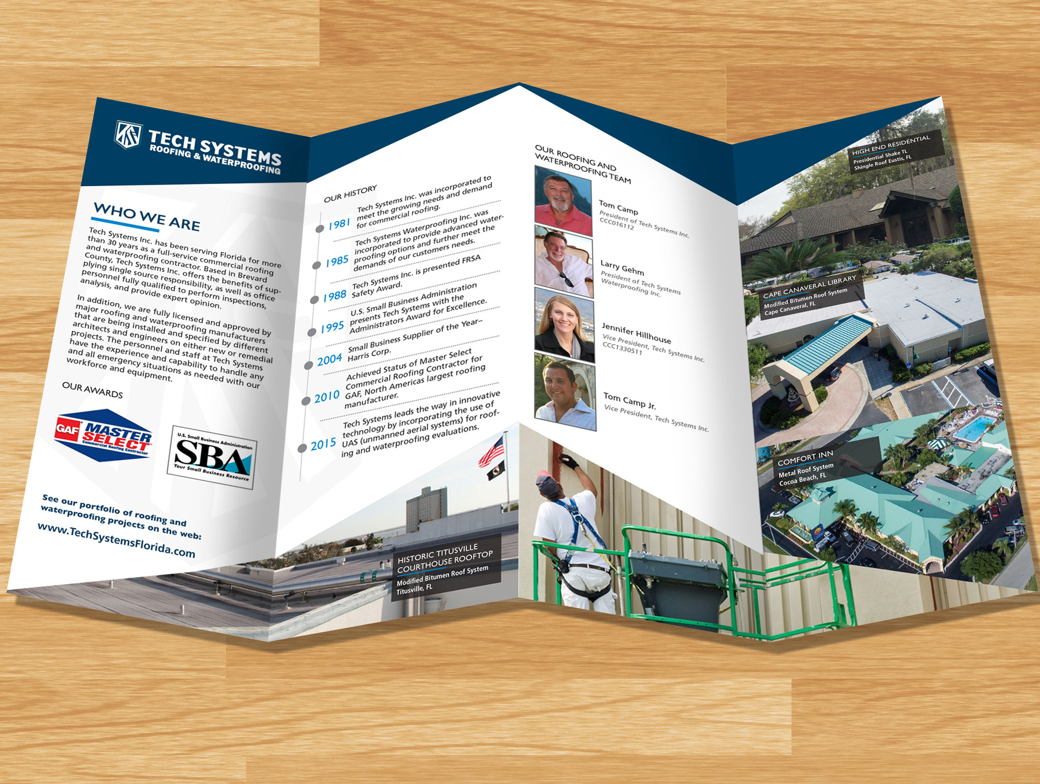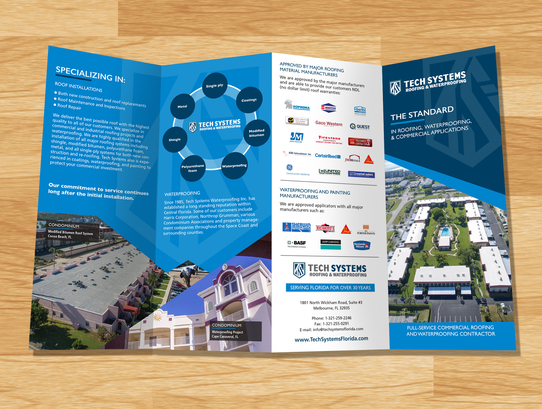 This commercial and residential roofing company had it all under one roof when it came to service and customer satisfaction, as well as an impressive portfolio of completed projects. What they didn't have was a website consistent with their great reputation or an excessible portfolio to show off thier work. I freshened up their website to be consistent with their image, and made the most of some stunning photography they had of some of their more complex and interesting roof installations. I made sure the website would look great on any device with a fully-responsive design. Finally, I created a brochure that mirrored the website so that they had a paper handout to hand to someone quickly at the job site.
